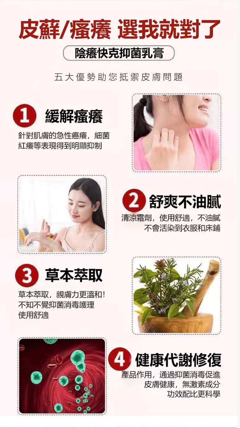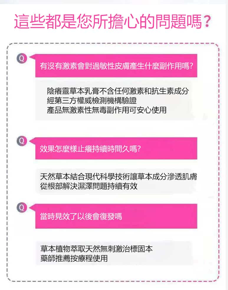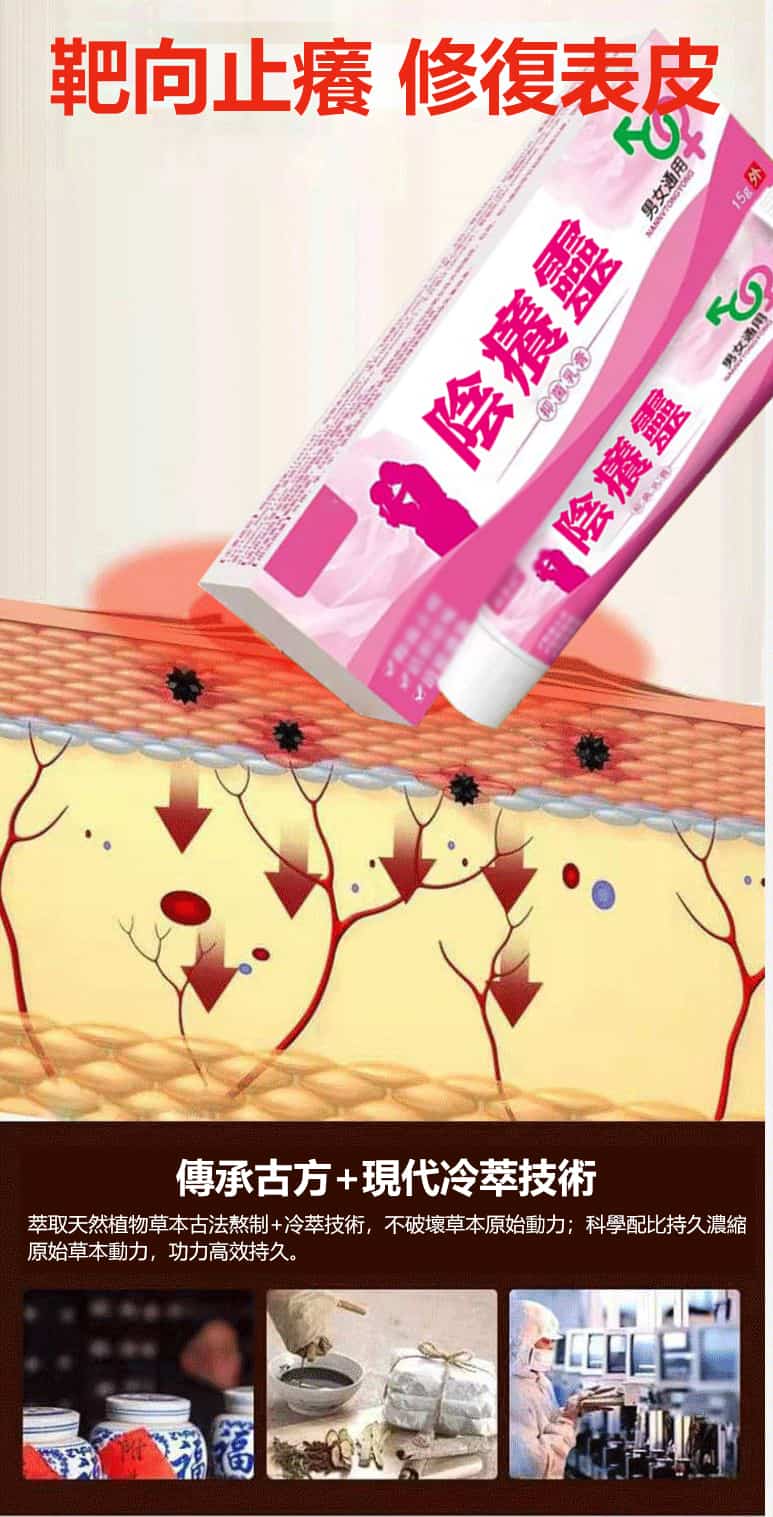 正品的陰癢靈草本乳膏採用天然草本植物萃取成分,結合現代科學技術讓草本成分滲透肌膚從根部解決私處濕疹、外陰炎、皮膚瘙癢等問題。台灣皮膚醫師推薦使用的私密處濕疹藥膏。適用範圍:四處瘙癢、外陰瘙癢、陰囊瘙癢、肛門瘙癢、大腿內側瘙癢等治療藥膏。